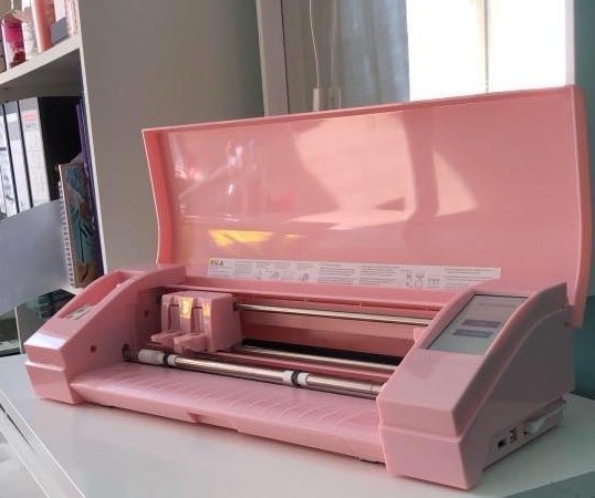 Mein Plotter ist ein Silhouette Cameo 3 in Glitzer Pink. Ich habe mich für einen Cameo und gegen den Portrait Plotter entschieden, da ich mich im Schneiden nicht auf das DIN A4 Format in der Breite beschränken wollte. Das Glitzer sieht man nur aus einem bestimmten Winkel, aber das Pastellrosa hat es mir sofort angetan.